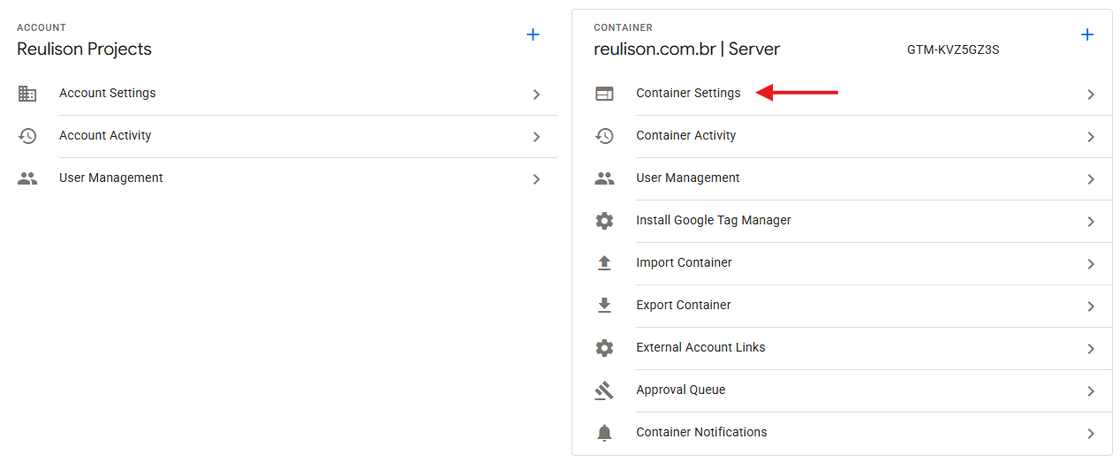 Passo 1: Navegue até o seu contêiner web do GTM.
