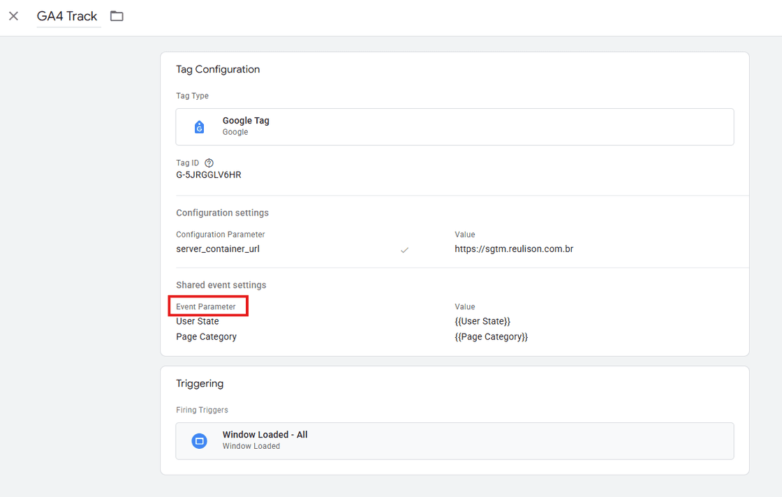 Usando parâmetros de tag do GA4, você pode enviar valores do contêiner do GTM no lado do cliente para o contêiner do GTM no lado do servidor.