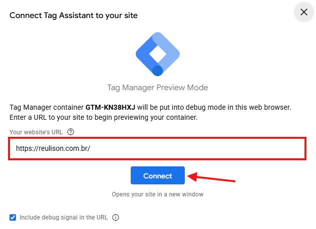 Passo 6: Insira a URL do seu site e clique no botão Conect: